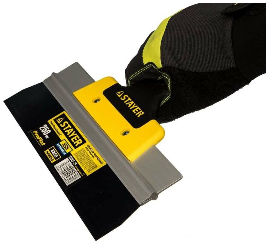 Отзывы на STAYER PROFlat, 250 мм, усиленная алюминиевая направляющая, двухкомпонентная ручка, анодированный, фасадный шпатель, Professional (10045-25)