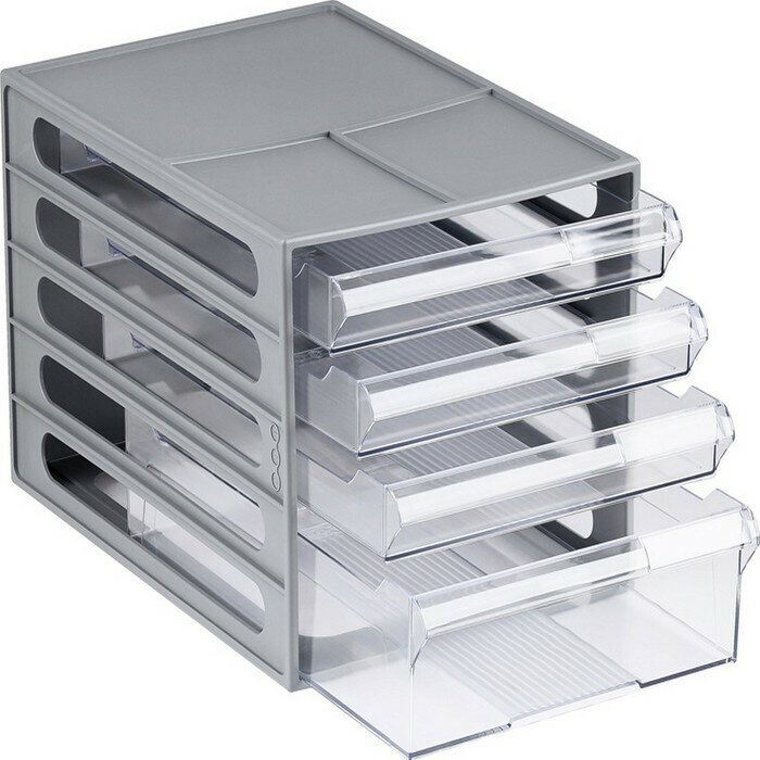 Блок из 4 выдвижных лотков Стамм, серый корпус, прозрачные лотки (арт. 323302)