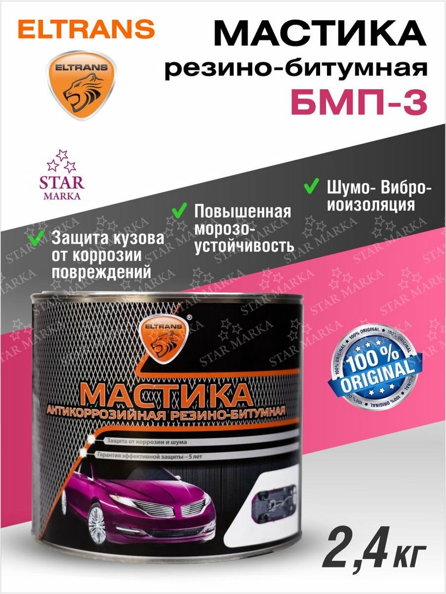 Мастика БПМ-3 (противошумная, резинобитумная) ЭлТранс (2,3кг), EL020902 Элтранс-Н EL-0209.02