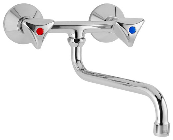 Смеситель на раковину настенный Эверест B46-350 с круглым поворотным изливом, кран-буксы 1/2", хром