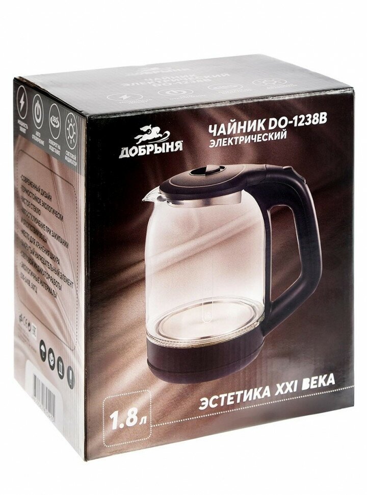 Добрыня Чайник электрический "Добрыня" DO-1238B, стекло, 1.8 л, 1800 Вт, подсветка, черный