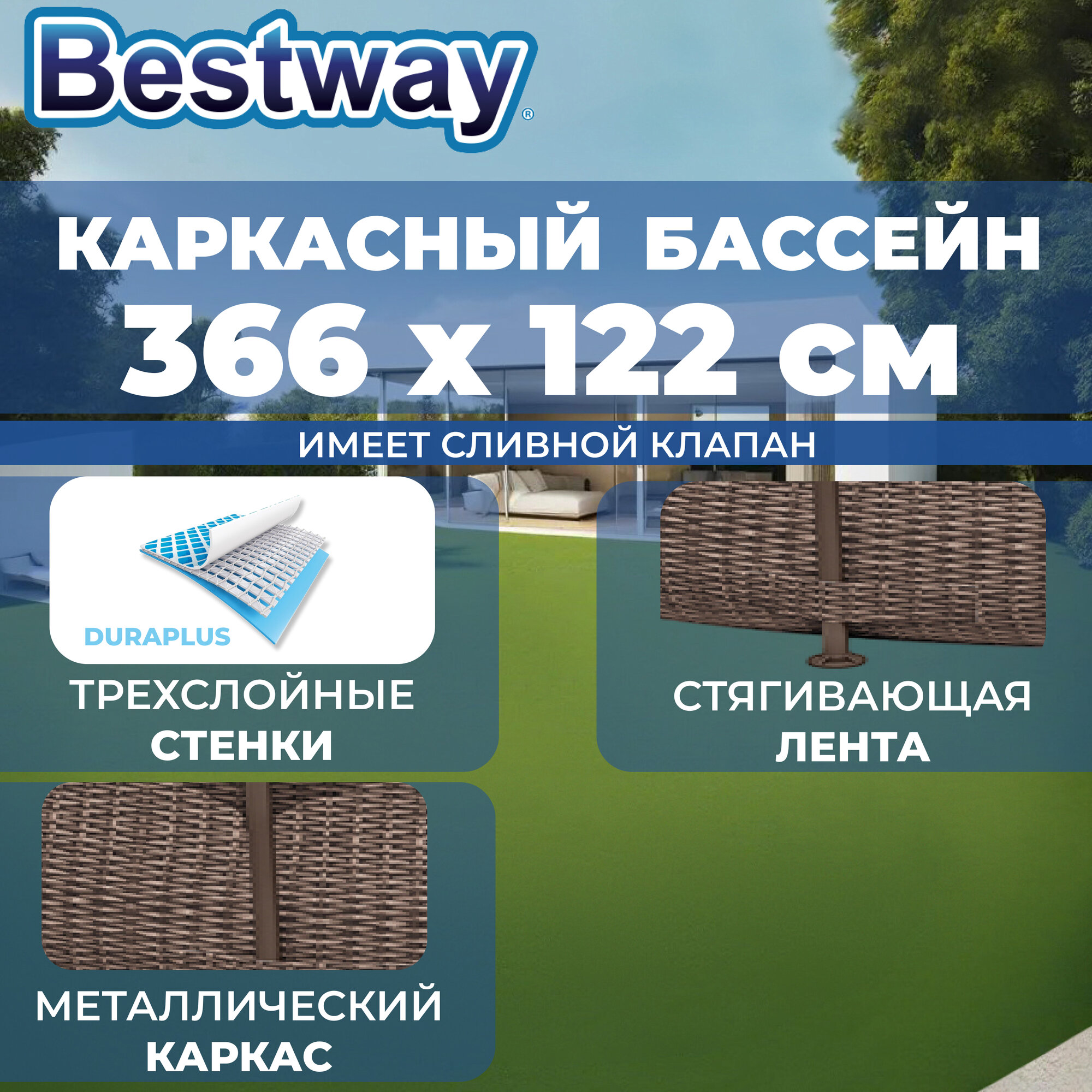 Отзывы на Бассейн каркасный, Bestway Steel Pro, 366х122см, 10250л, коричневый, плетёный ротанг