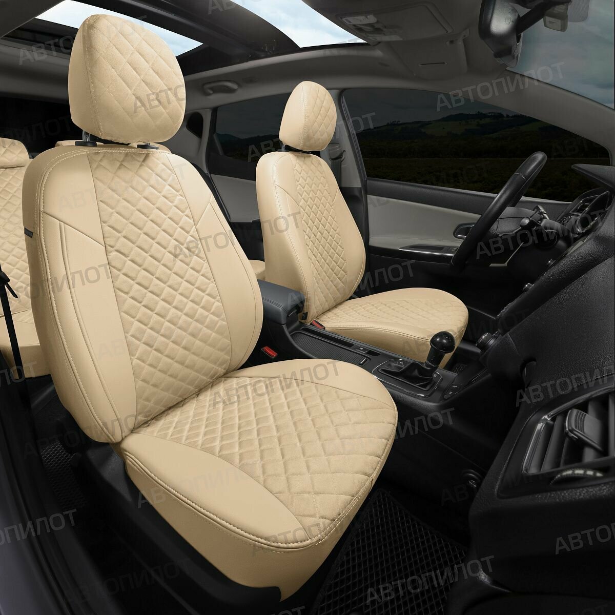 Комплект АВТОПИЛОТ из экокожи для Skoda Fabia 5J, ромб