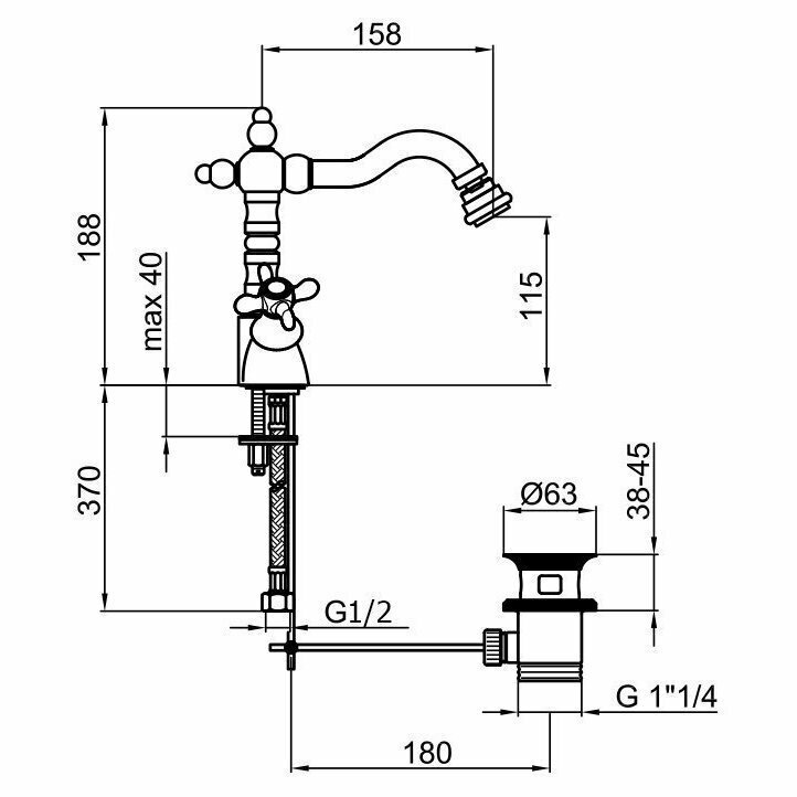 | Длина излива | 158 мм |