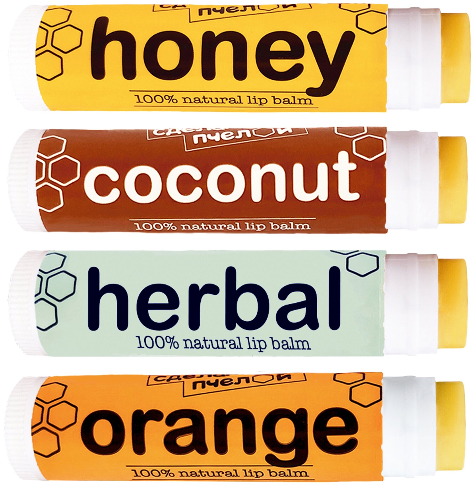 Набор бальзамов для губ "Coconut, медовый, herbal, orange" Сделано пчелой, 4 шт