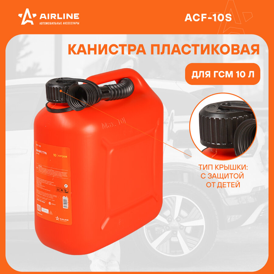Канистра 10л пластиковая, крышка с защитой от детей ACF-10S AIRLINE информация: