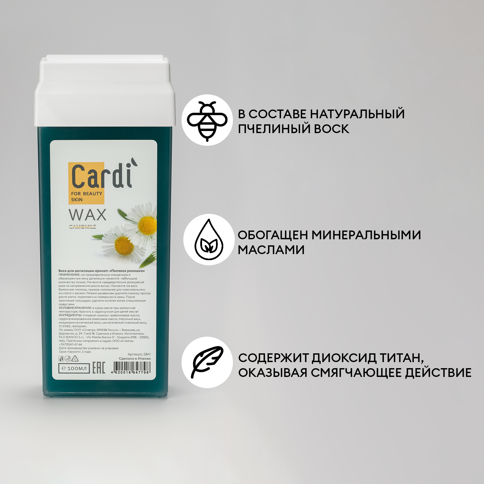 Воск для депиляции Cardi (аромат: Полевая Ромашка), 100 мл информация: