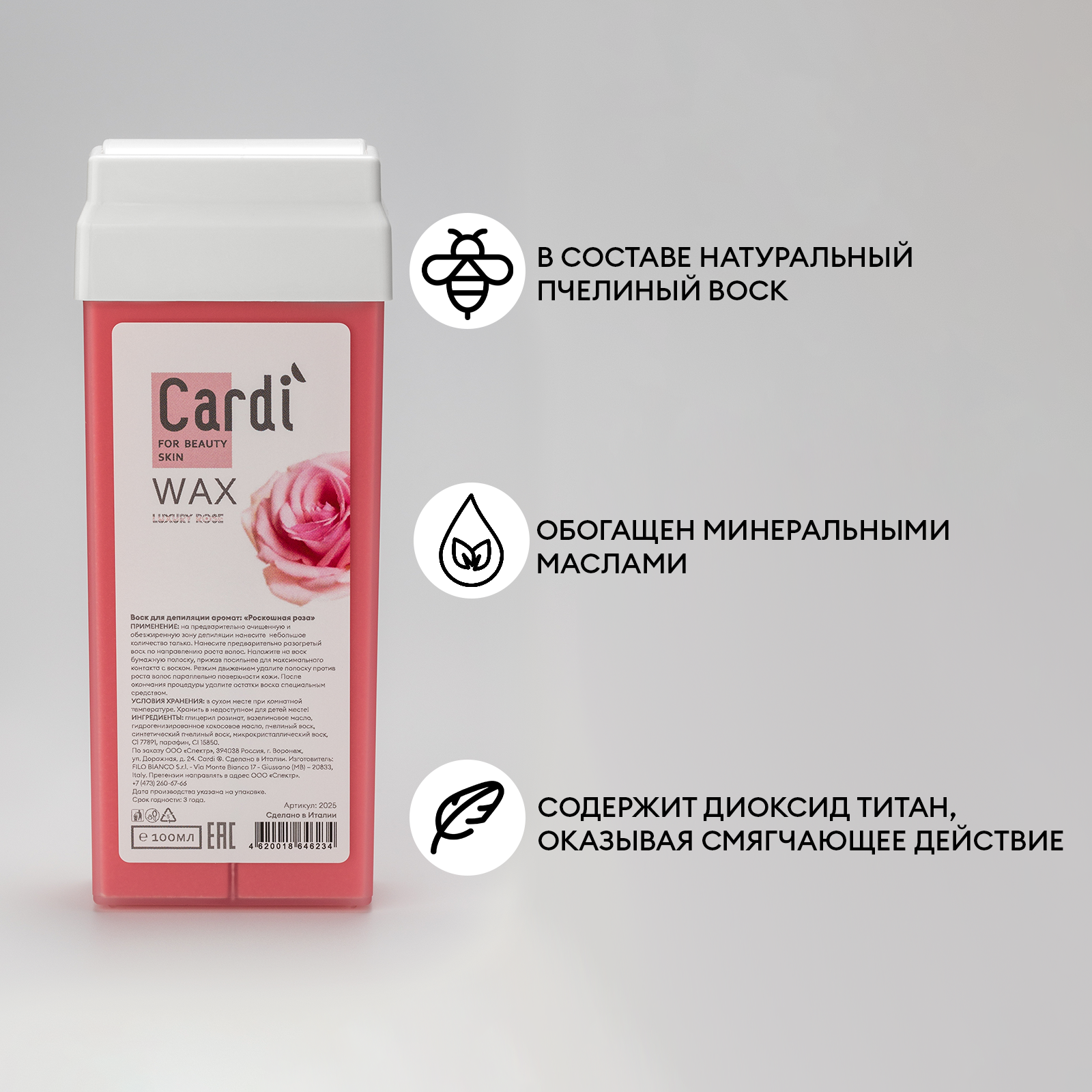 Воск для депиляции Cardi (аромат: Роскошная роза), 100 мл информация: