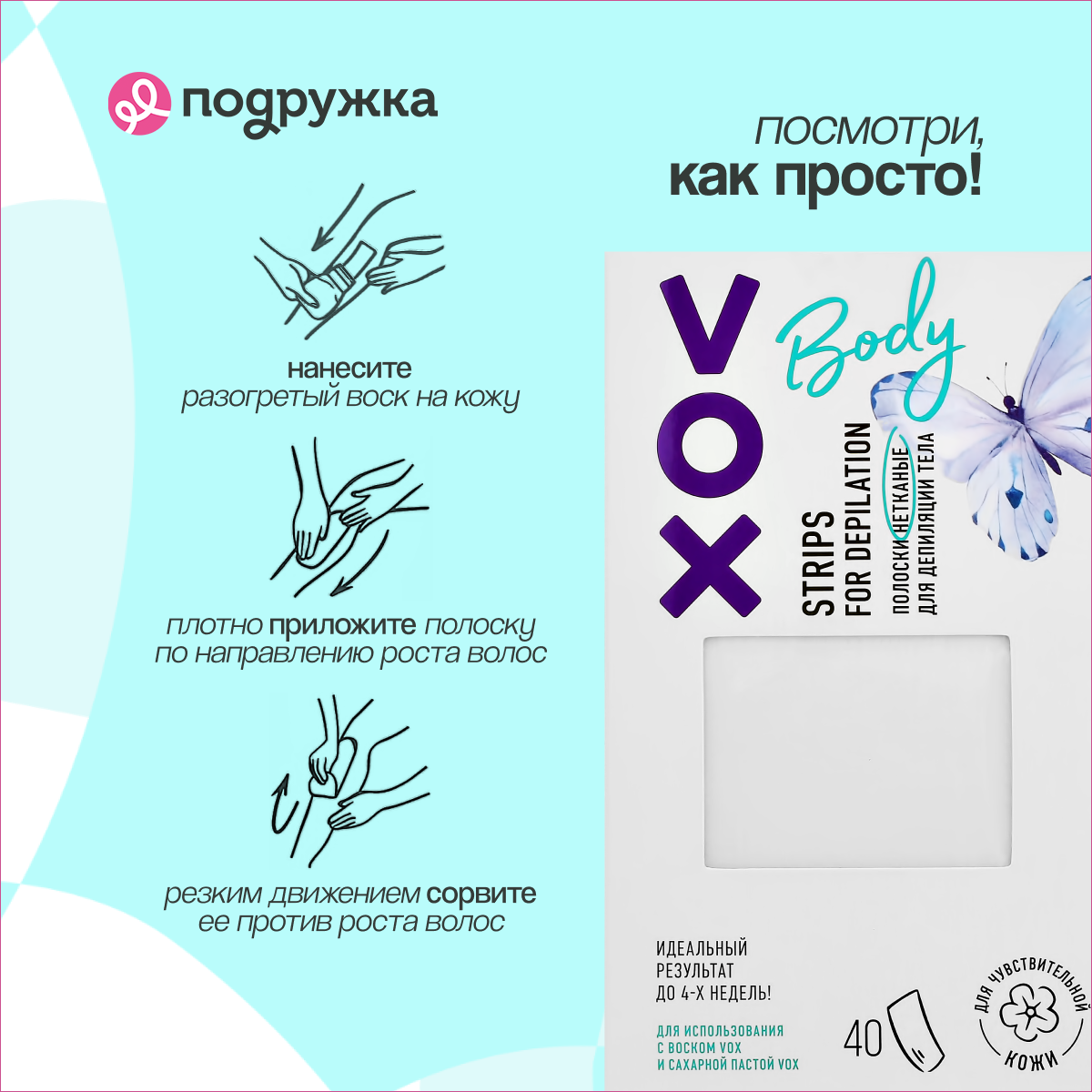 Набор для депиляции `VOX` (теплый воск 120 мл, полоски для депиляции 20 шт)