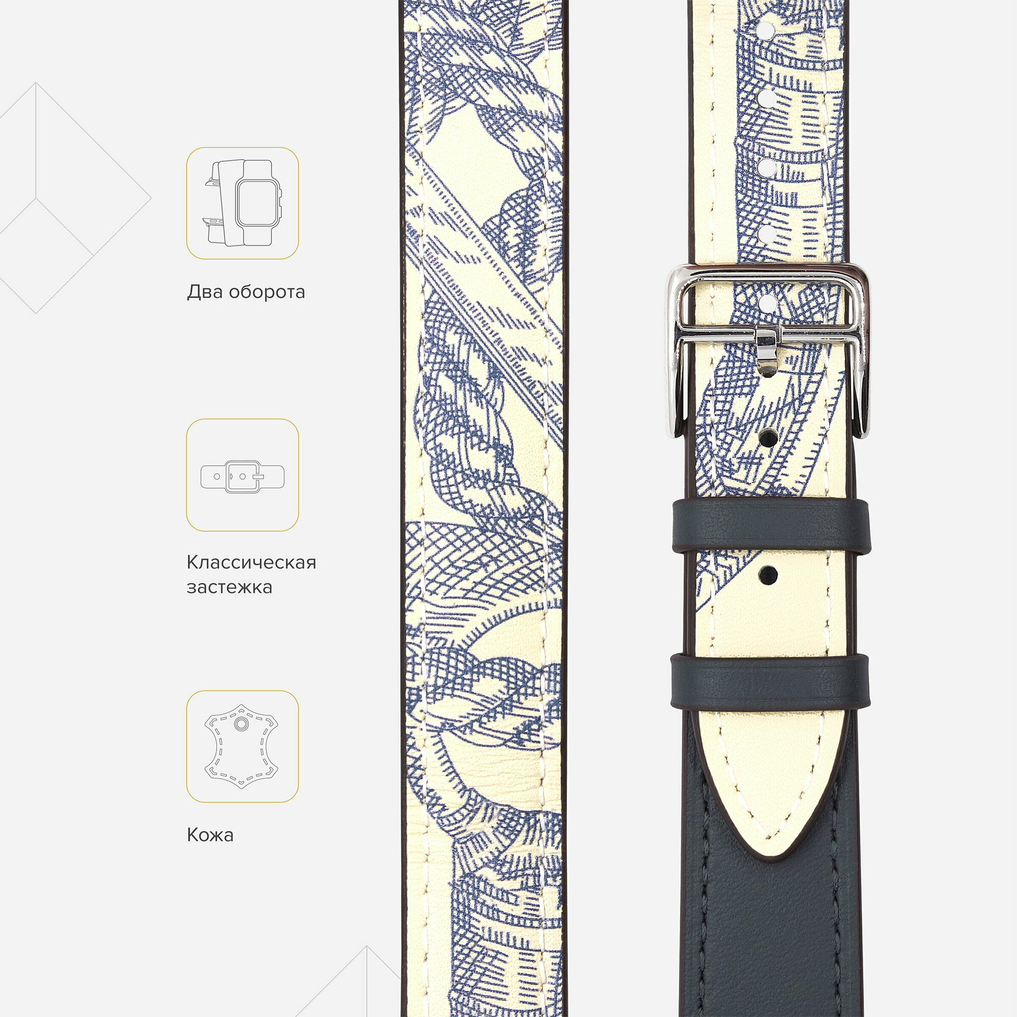 Кожаный ремешок в два оборота для Apple Watch 38/40 mm LYAMBDA MERIDIANA LWA-01-40-BLP Blue/Beige rope информация: