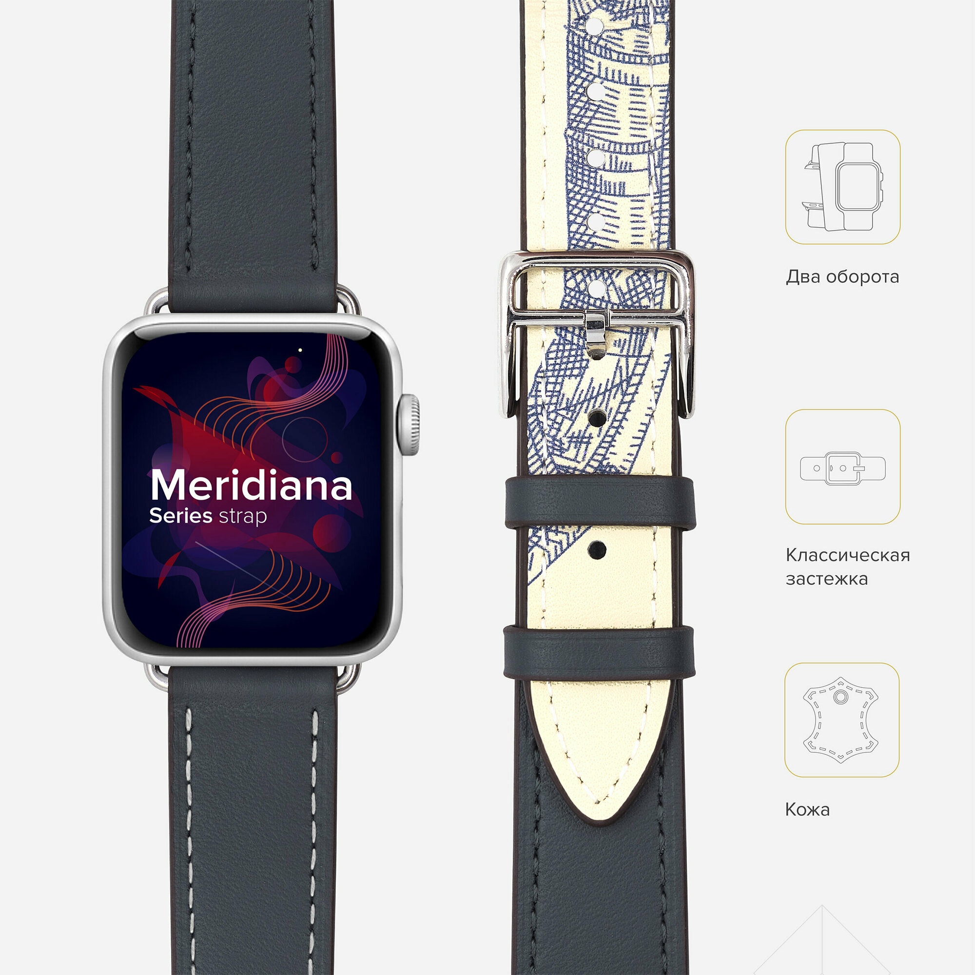 Кожаный ремешок в два оборота для Apple Watch 38/40/41 mm LYAMBDA MERIDIANA LWA-01-40-BK Black