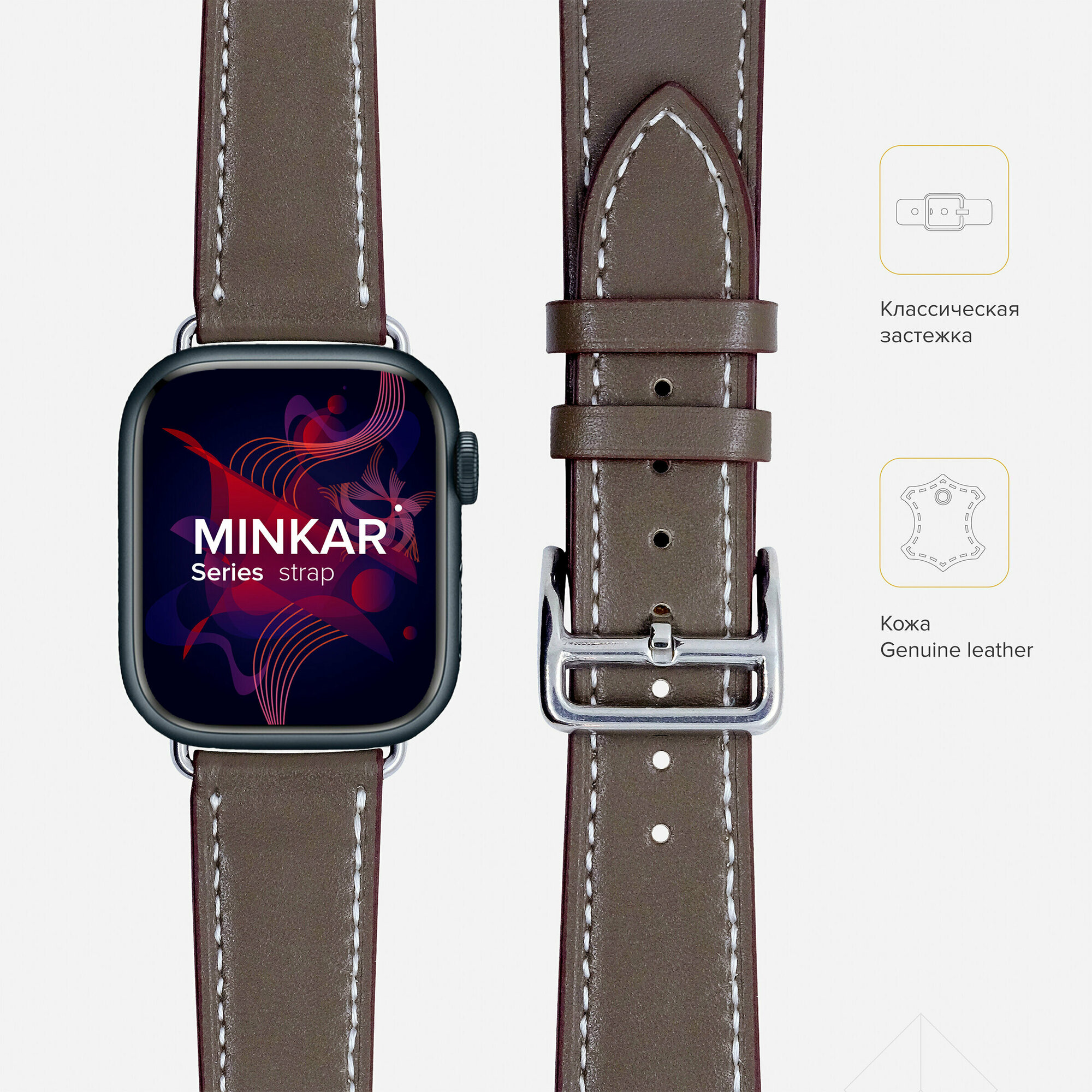 Кожаный ремешок для Apple Watch 42/44/45 mm Series 1-7, SE LYAMBDA MINKAR LWA-02-44-GR серый
