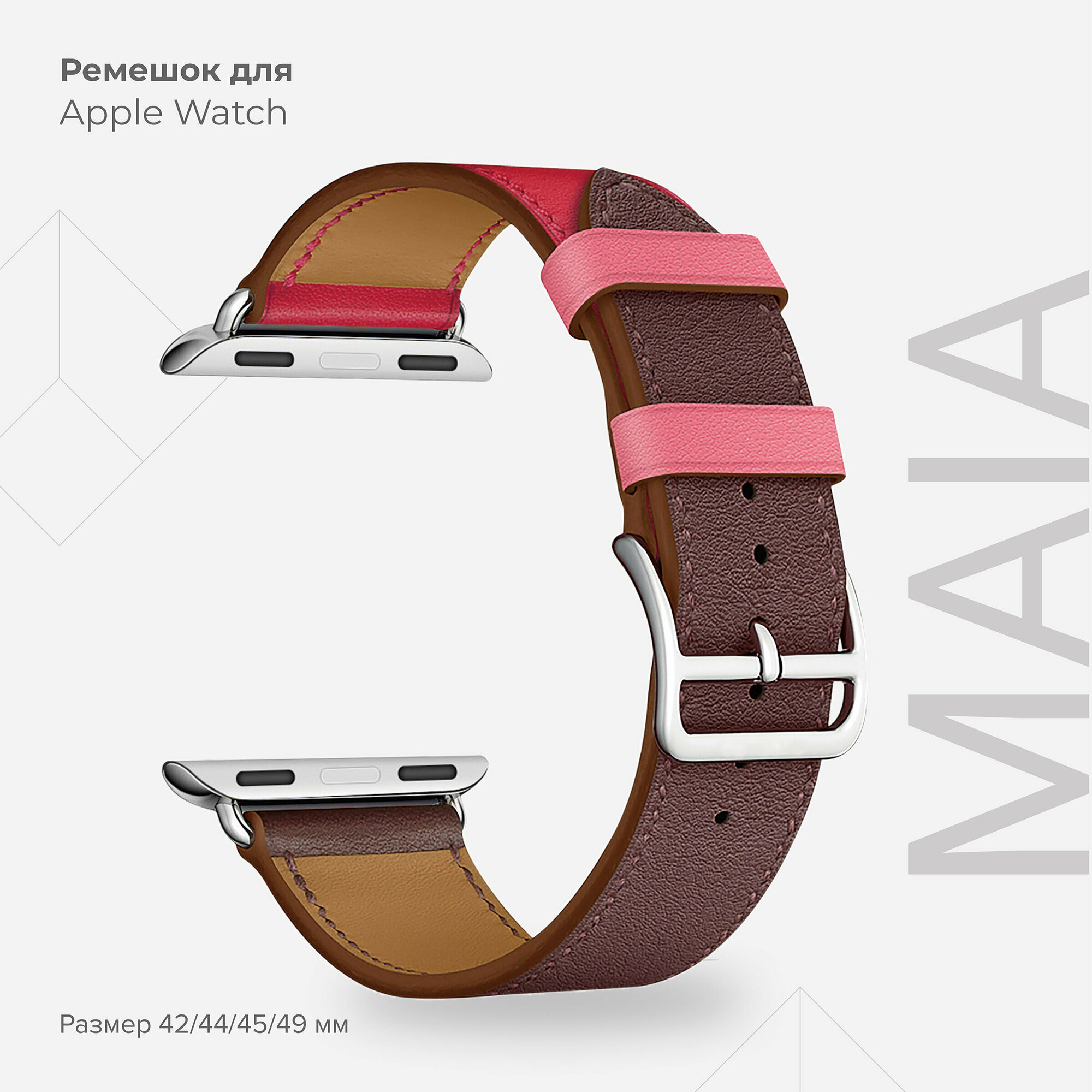 Кожаный ремешок для Apple Watch 42/44/45 mm Series 1-7, SE LYAMBDA MAIA LWA-03-44-BRR , коричневый / красный / розовый