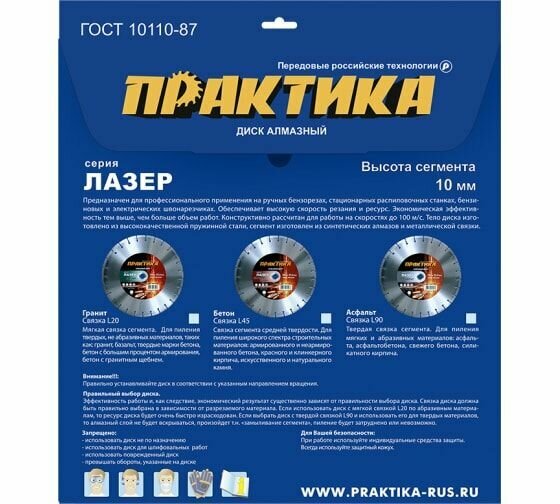 Диск алмазный сегментный ПРАКТИКА "Лазер-20-Гранит" 030-016 информация: