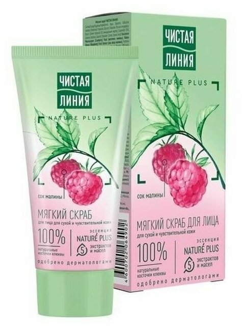 Скраб для лица чистая линия Фитотерапия Малина и брусника мягкий, 50мл, Россия, 50 мл информация: