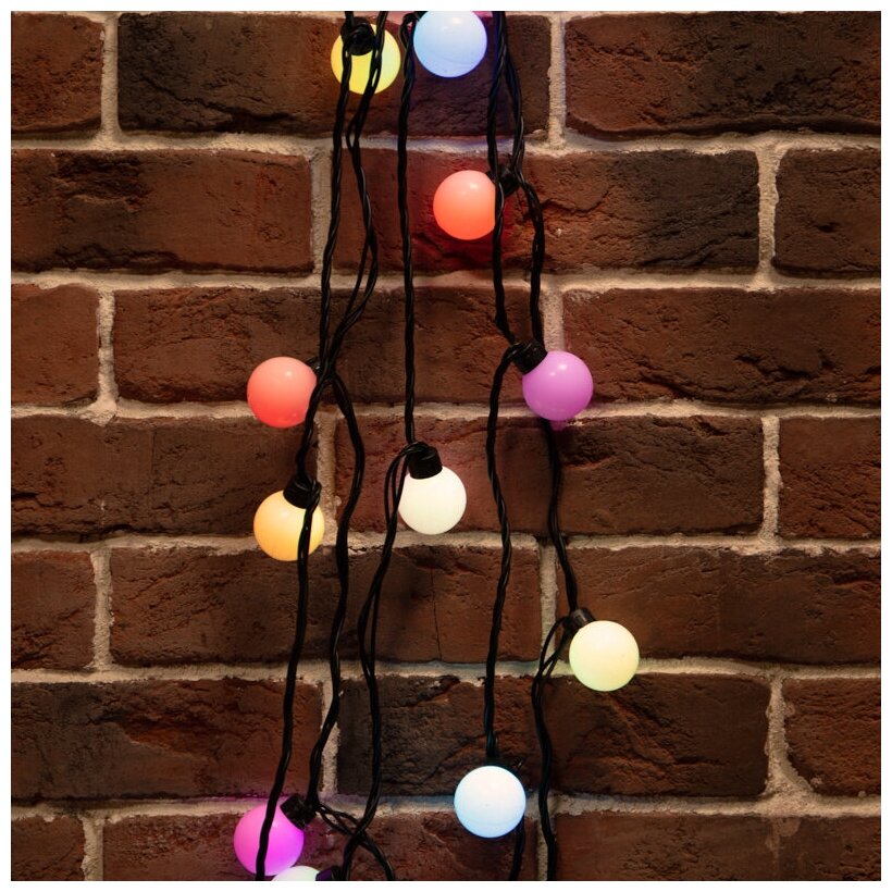 Светодиодная гирлянда Neon-night "Мультишарики" 10 м, диаметр 38 мм, 40 светодиодов, эффект смены цветов RGB, черный провод
