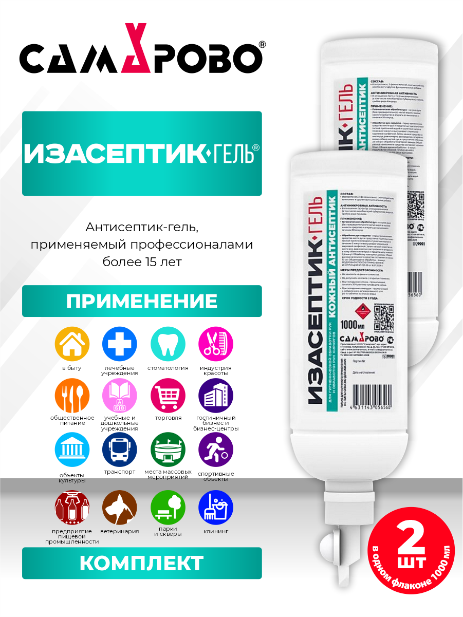 Антисептическое средство Изасептик Гель 1 литр диспенсопак х 2 шт. информация:
