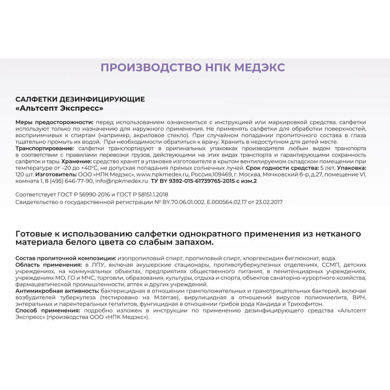 НПК медэкс Салфетки дезинфицирующие Альтсепт Экспресс, 120 шт