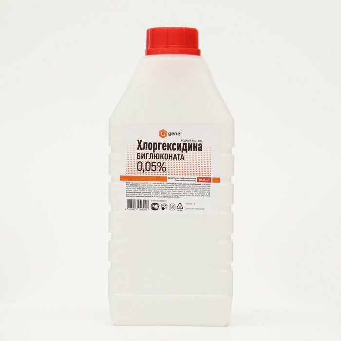 Genel средство дезинфицирующее (кожный антисептик) Водный раствор хлоргексидина биглюконата 0,05%, 1000 мл, тип крышки: винтовая
