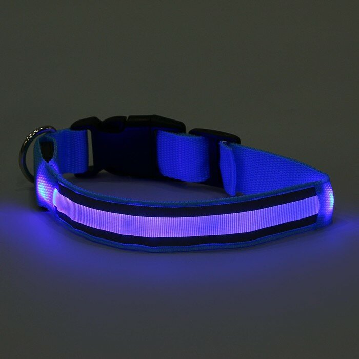 10 цен на Ошейник с подсветкой Двойная полоса размер S, ОШ 35-43 х 2,5 см, 3 режима свечения голубой