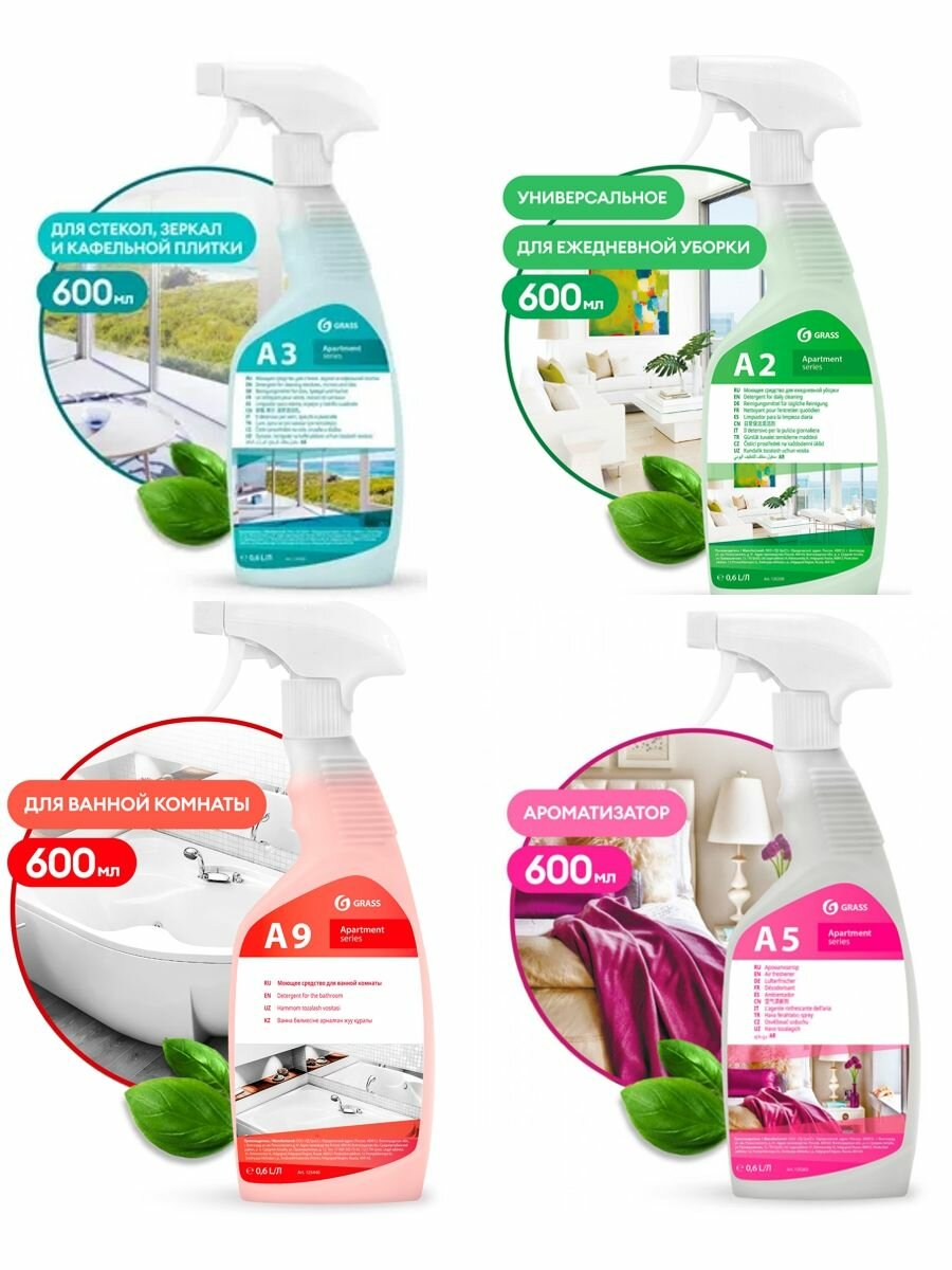 2 шт, Моющее средство для стекол, зеркал и кафельной плитки GRASS APARTMENT SERIES A3 600мл 475 ₽