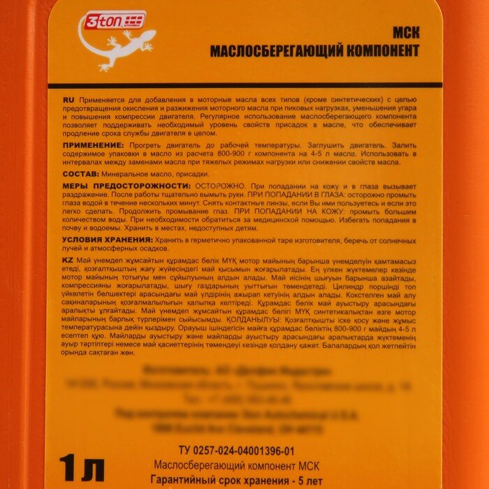 Маслосберегающий компонент MSK 3ton, 1 л ТМ-107 информация: