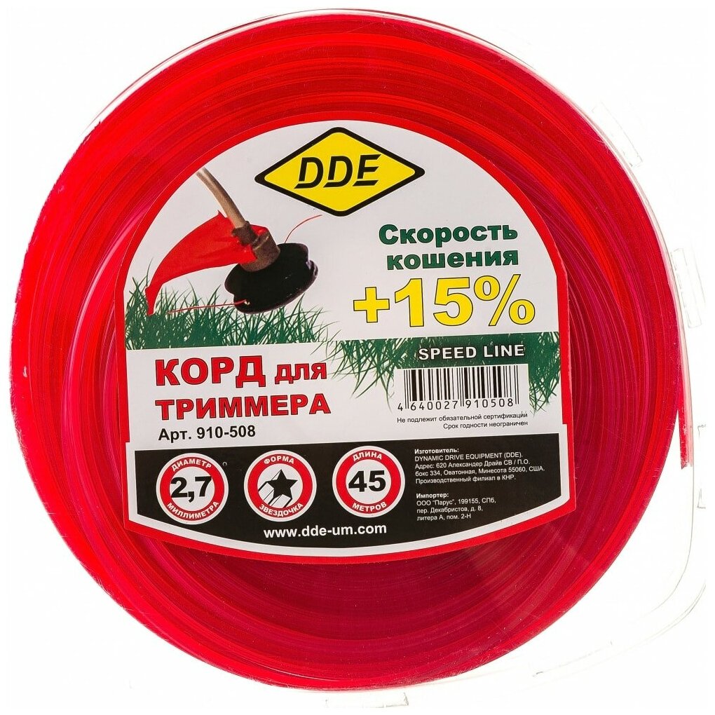 DDE Корд триммерный на катушке Speed line звезда 2,7 мм х 90 м красный 910-515
