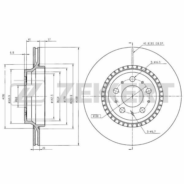 Тормозной диск задний ZEKKERT BS-5109 280x16 для Peugeot Boxer, Fiat Ducato, Citroen Jumper
