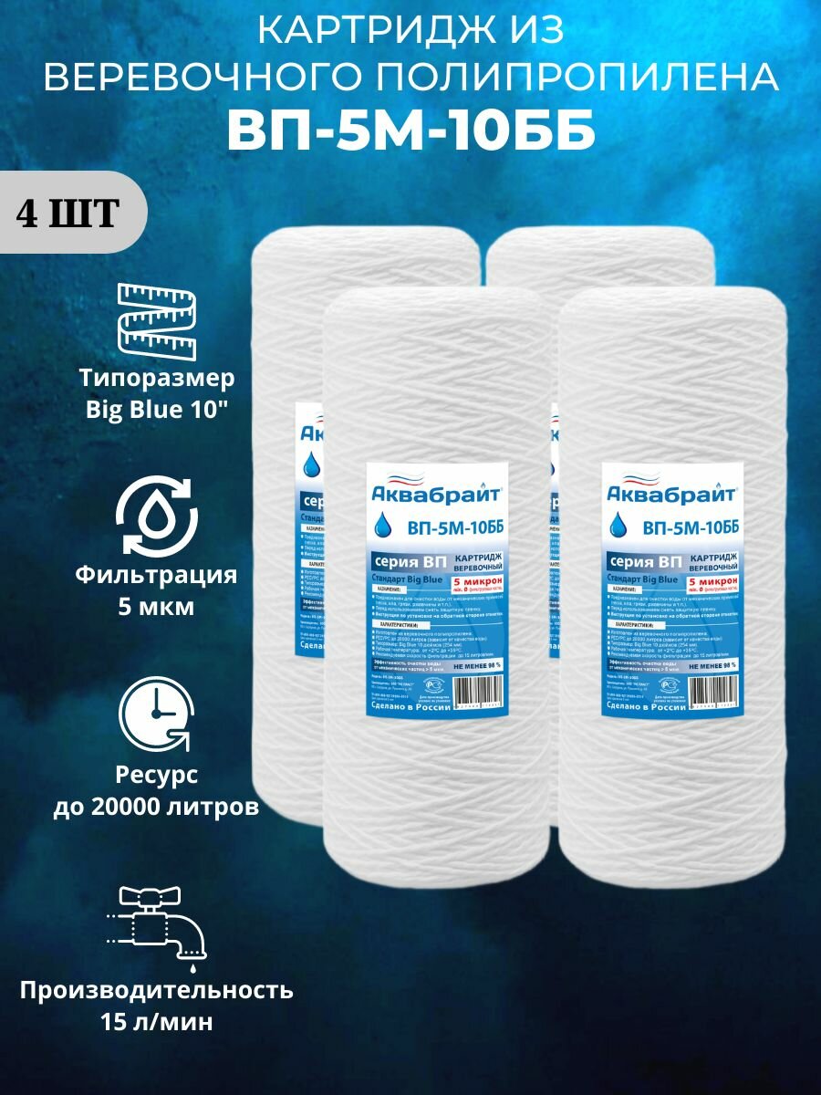 Аквабрайт Картридж из полипропиленового шнура ВП-5 М-10 ББ 10 33554