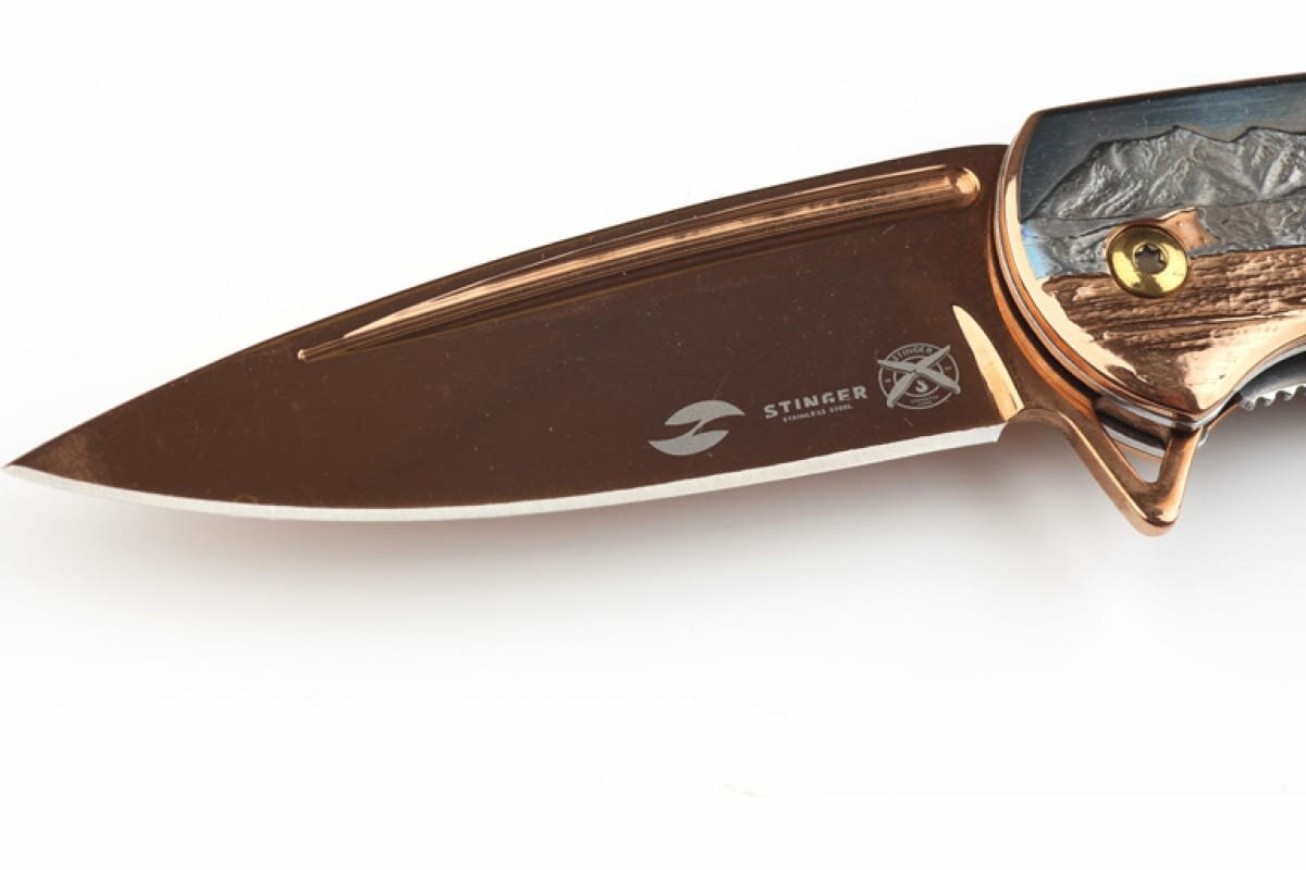 Stinger FK-S064C Нож складной stinger, 84 мм (бронзовый), рукоять: сталь (серый и бронзовый), картонная коробка, stinger