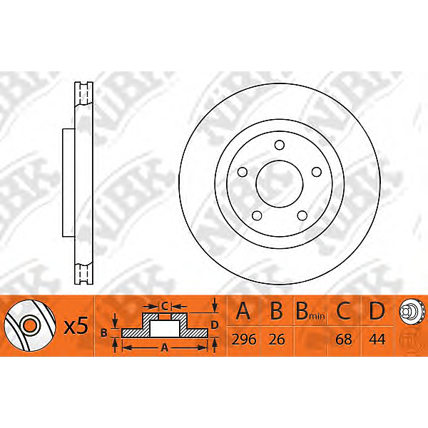 NIBK RN1303 Торм.диск пер.вент.[296x26] 5 отв. 2шт