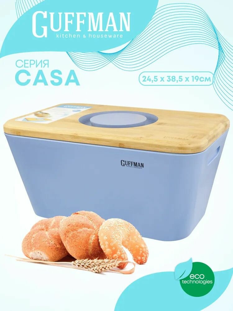 10 цен на Хлебница M04-043-B с разделочной доской-крышкой, голубая
