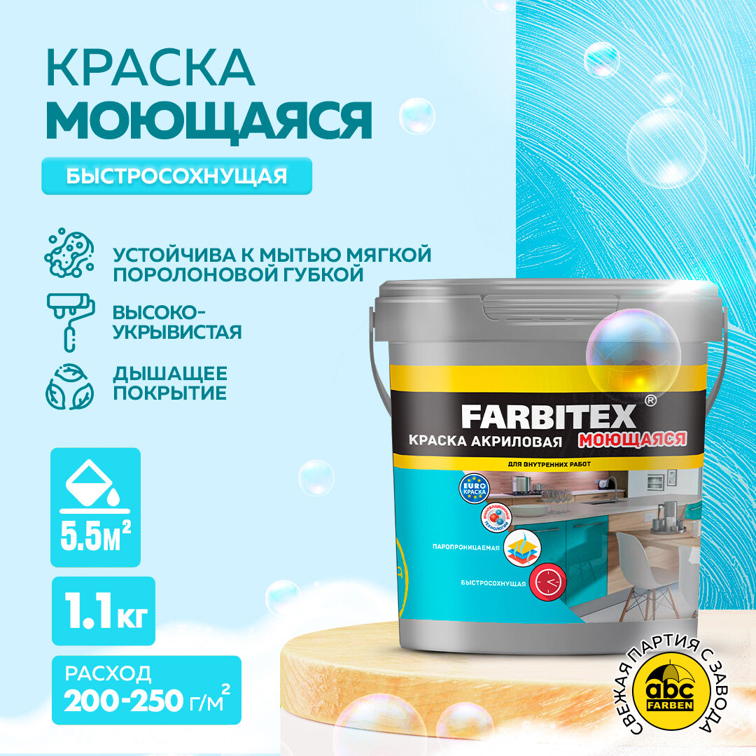 Farbitex Краска акриловая моющаяся(1.1 кг) 4300006826 660 ₽
