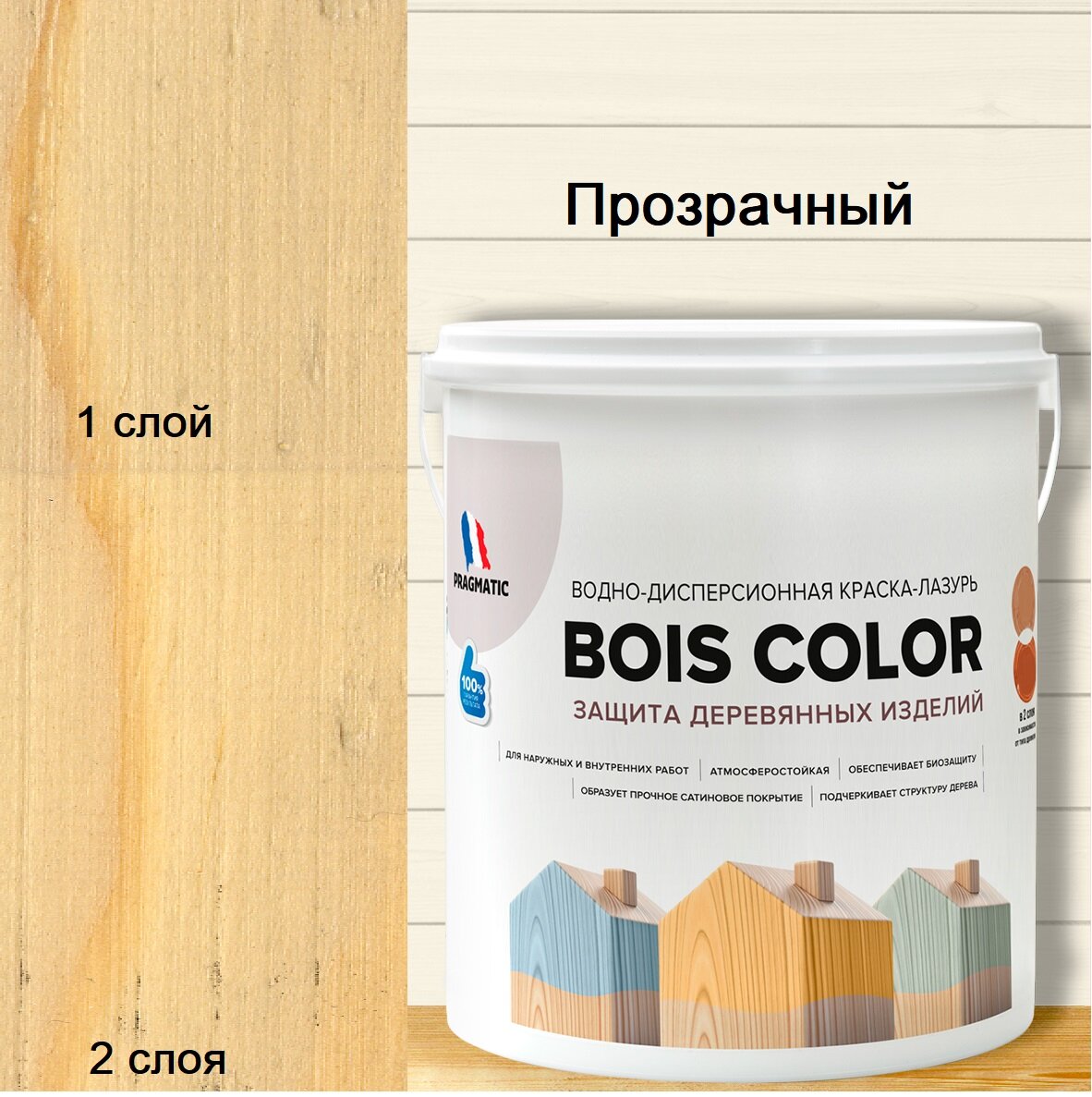 Буа колор Pragmatic краска-лазурь для защиты дерева, 2л, бесцветный (база С)