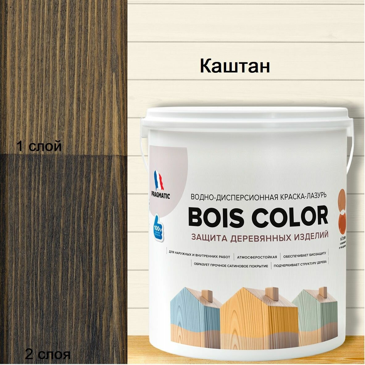 Краска-лазурь подчеркивает структуру дерева, для наружных и внутренних работ, защищает от плесени, грибков, атмосферостойкая, водоотталкивающая BOIS COLOR База С 9 л, цвет Каштан тон 107 информация: