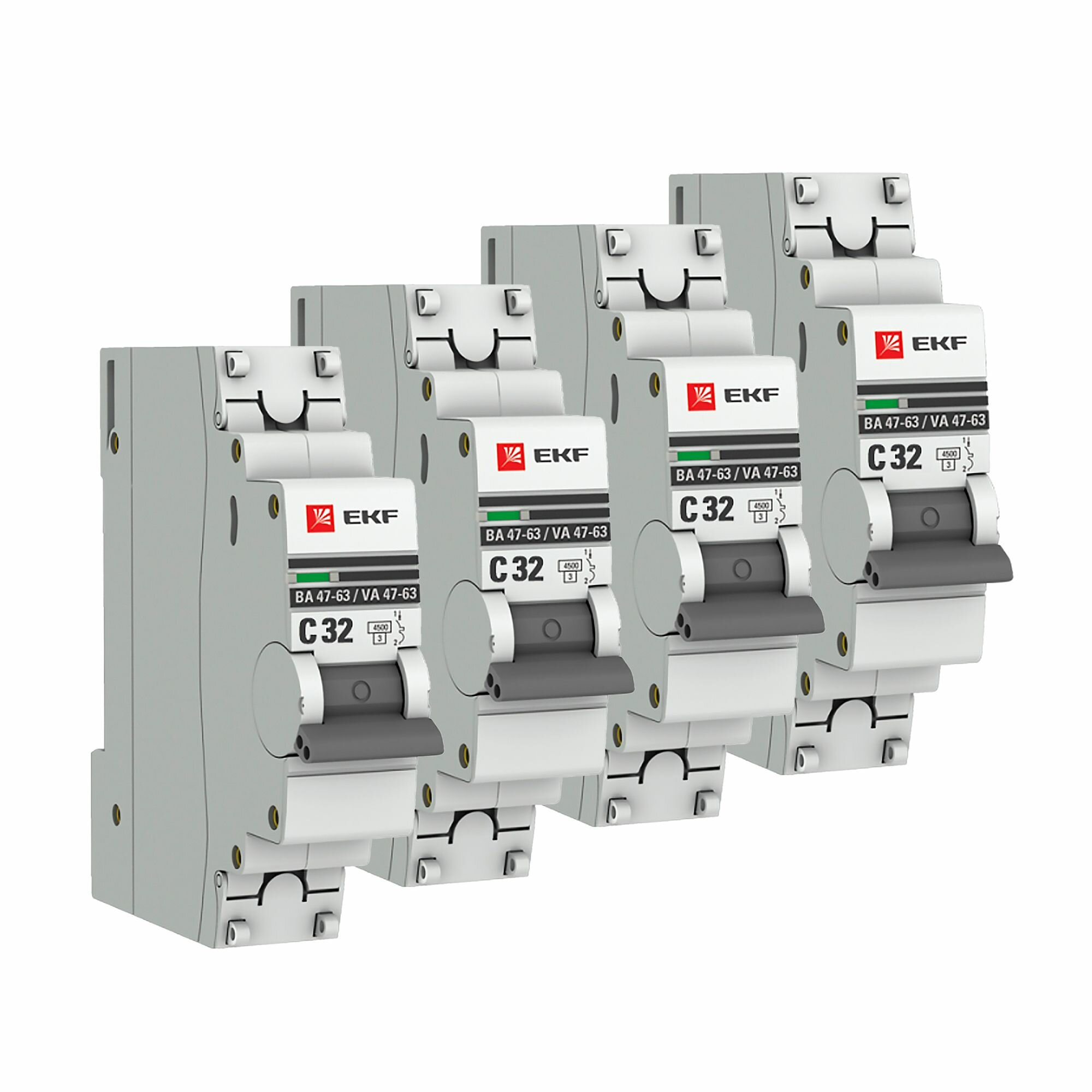 (4 шт) Выключатель автоматический однополюсный 32А С ВА47-63 4.5кА PROxima информация: