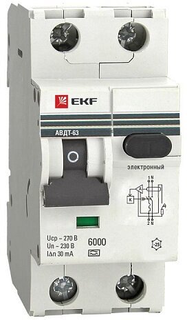 Дифференциальный автоматический выключатель EKF PROxima АВДТ-63, 32А, С, 100мА, тип A, 6кА, электронный