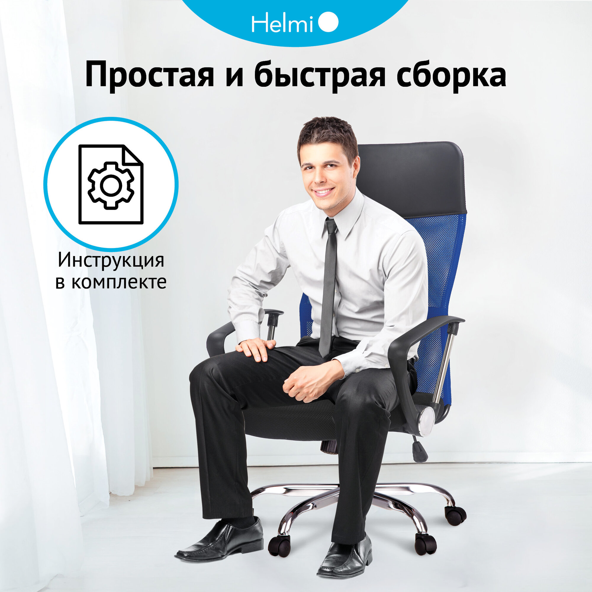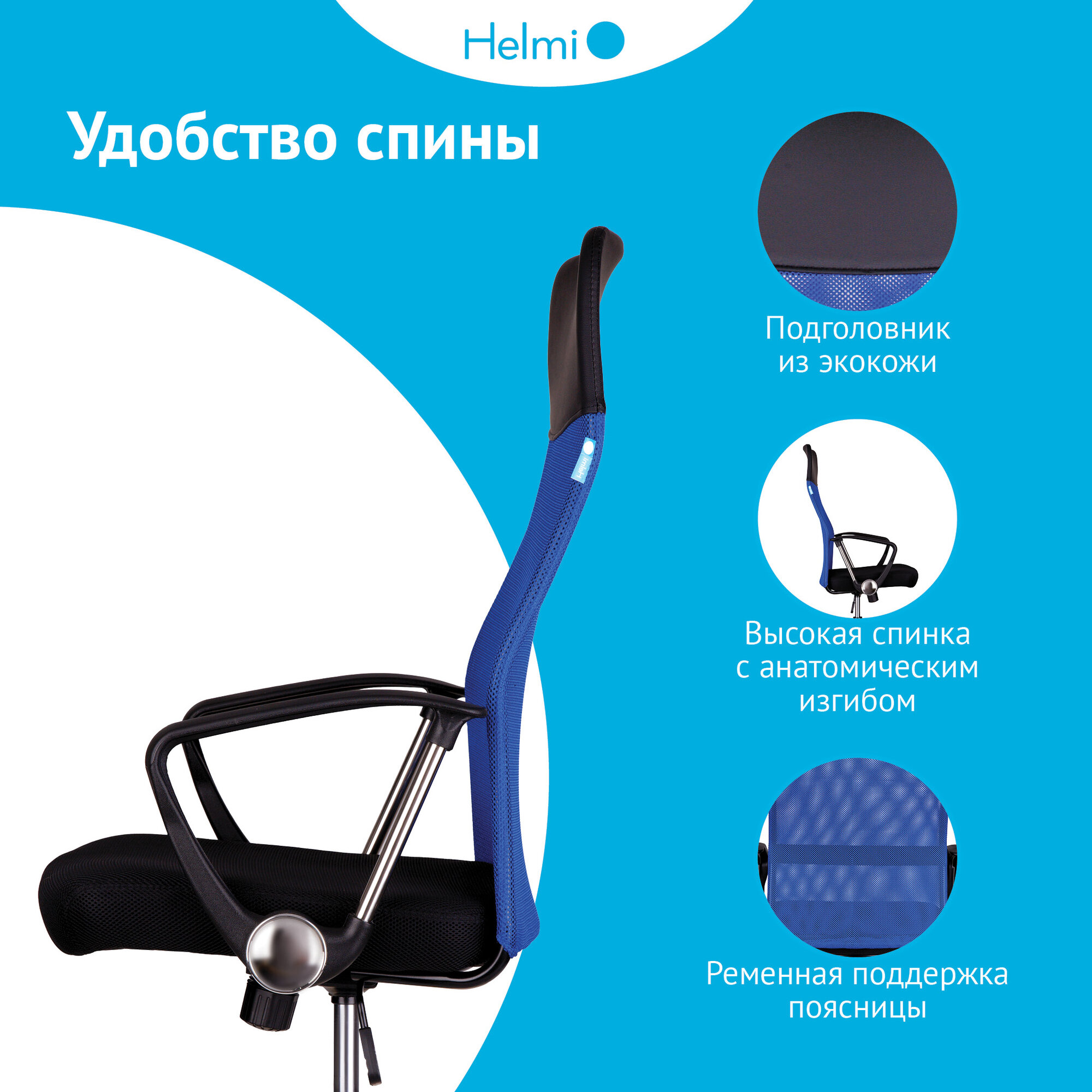 10 цен на Кресло руководителя Helmi HL-E16 "Content", ткань, сетка, экокожа, черная, синяя, хром 311358