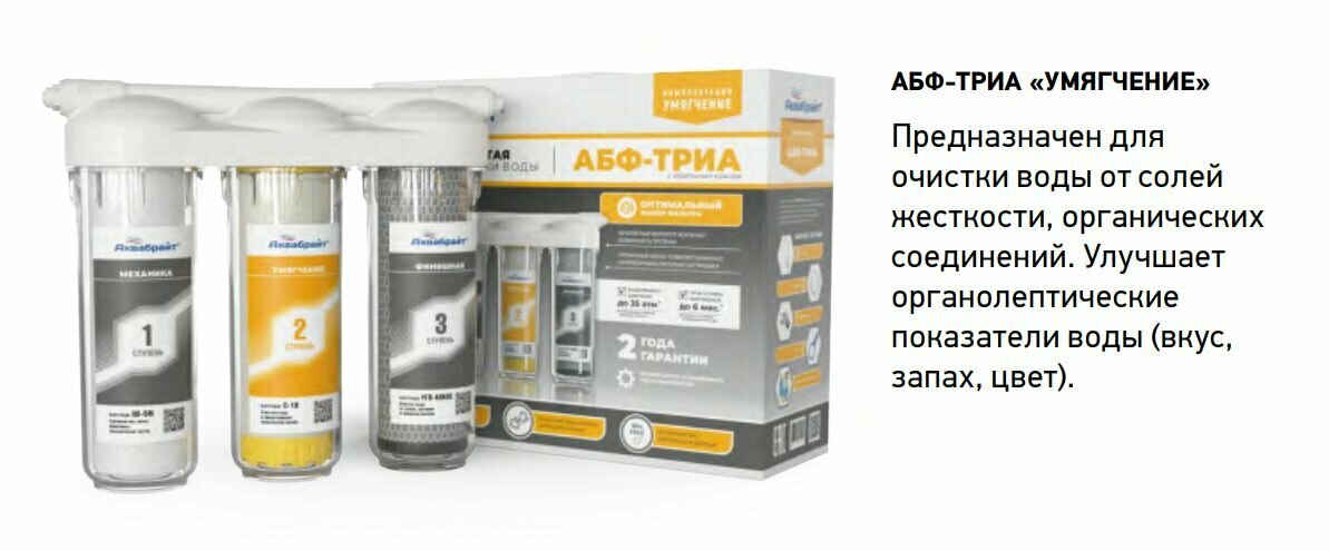 Фильтр для воды под мойку Аквабрайт абф-триа Умягчение, 3 ступени