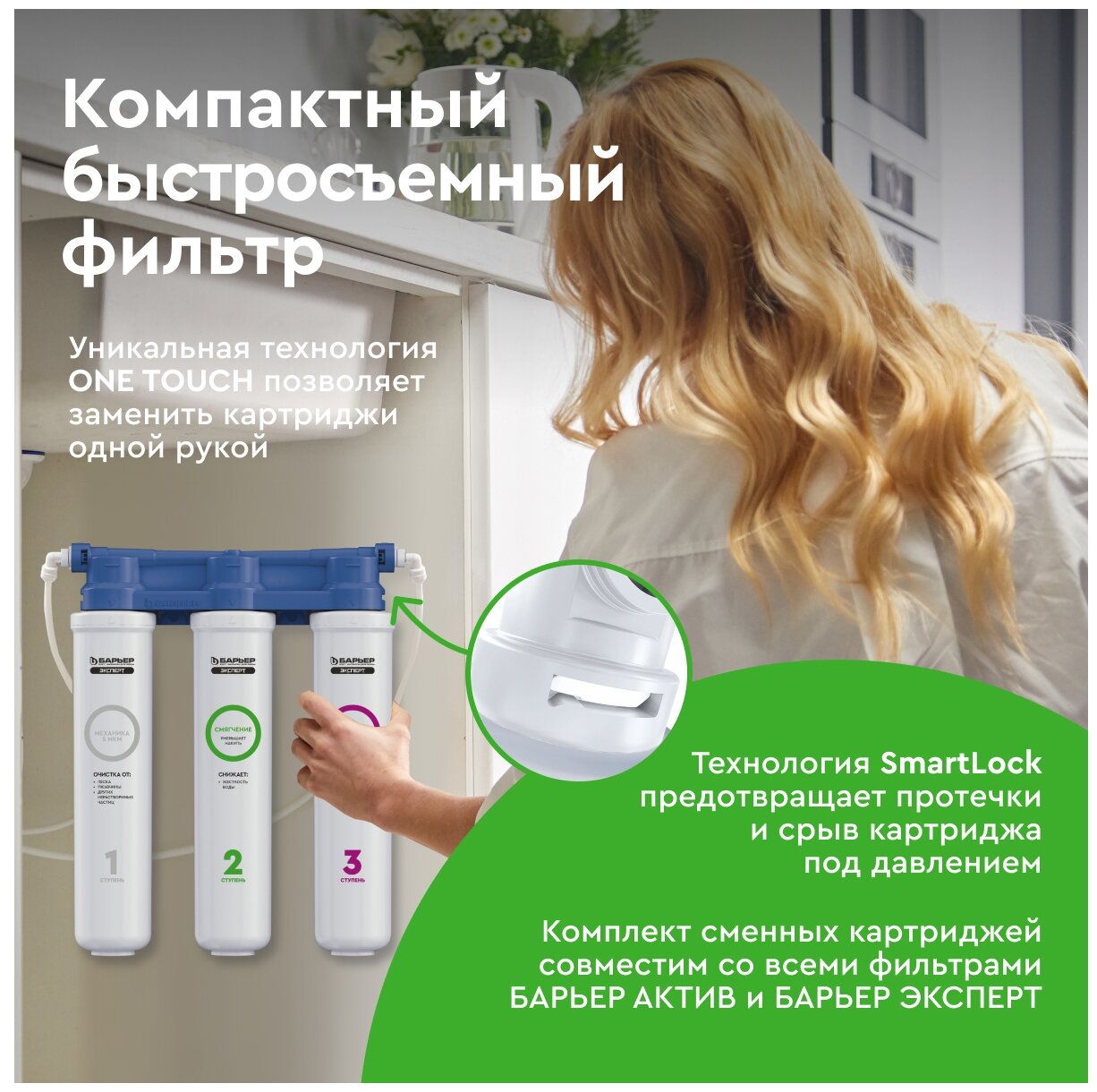 10 цен на Трехступенчатый быстросъемный фильтр под мойку для очистки воды Барьер эксперт слим Жесткость