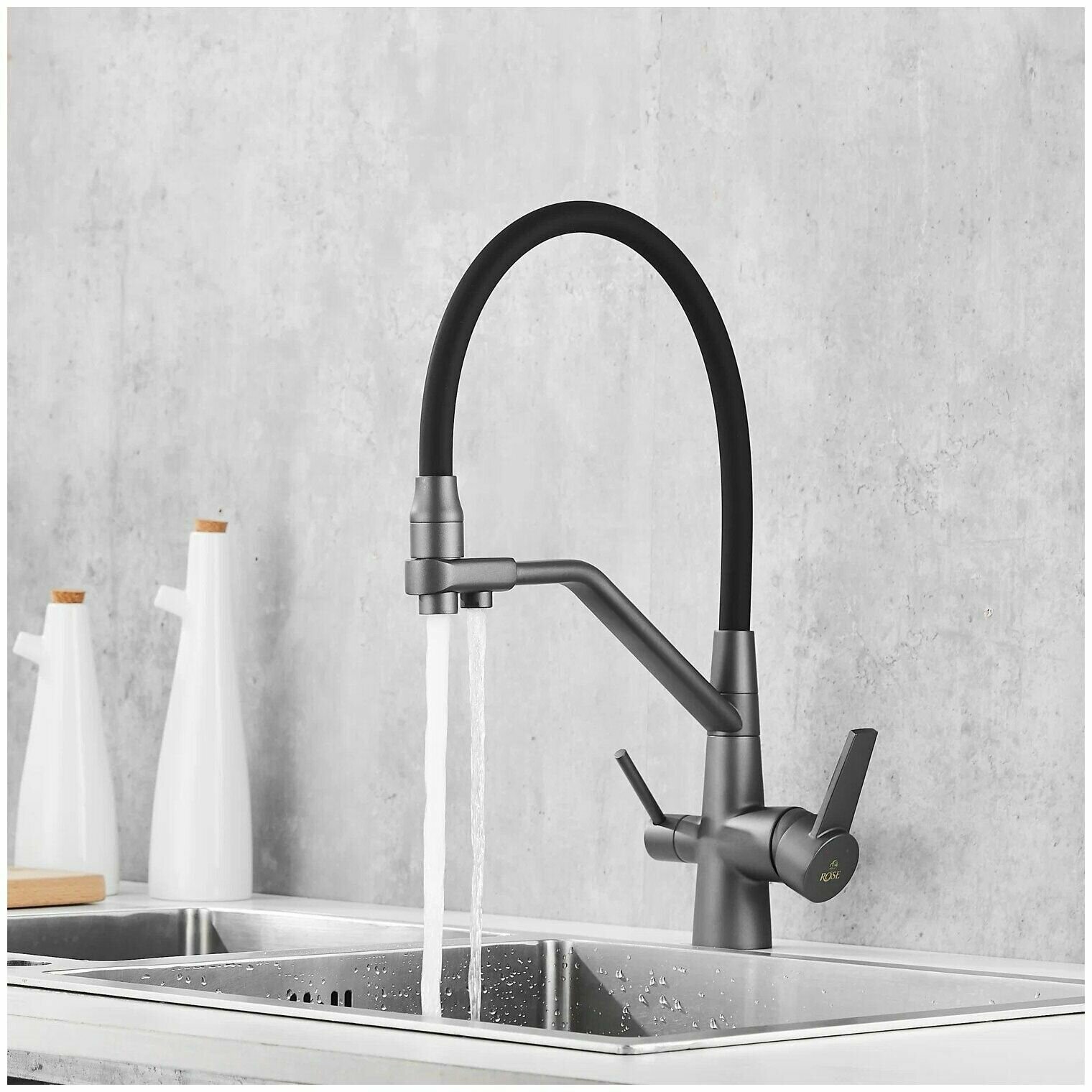 Смеситель для кухни с краном для питьевой воды и гибким изливом, R558Y оружейная сталь информация: