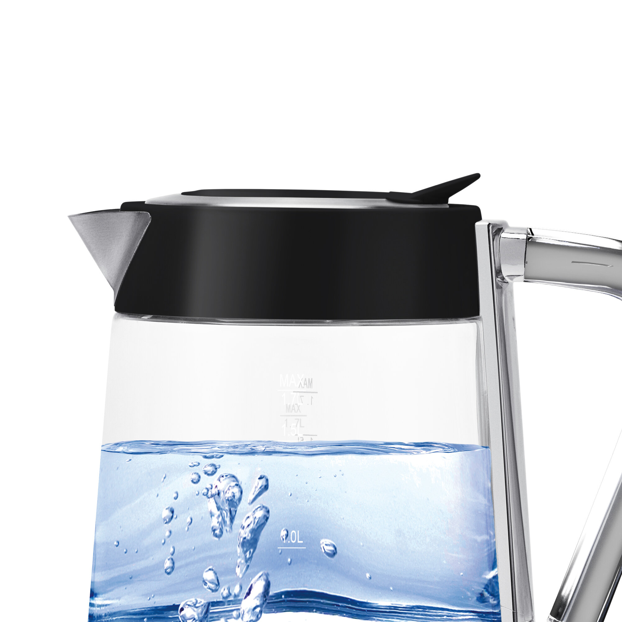 Чайник POLARIS PWK 1715 CGL, 1,7 л, 1850-2200 Вт, закрытый нагревательный элемент, стекло, черный, 48643, PWK 1715 CGL b