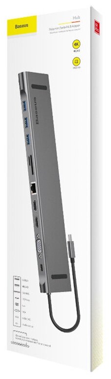 10 цен на USB HUB разветвитель BASEUS Enjoyment Series 11 в 1 Type-C (m) - 3xUSB3.0 + Type-C PD + 2xHDMI + RJ45 + VGA + 3.5мм + SD/TF, темно-серый