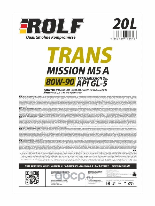 Rolf Transmission M5 A 80W-90 (20L) Трансмиссионное Масло ROLF арт. 322404 11 030 ₽