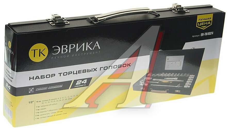 10 цен на Эврика ER-TK4024 Набор головок торцевых 1/2" 6-ти гранных 24 предмета в металлическом кейсе ТК эврика