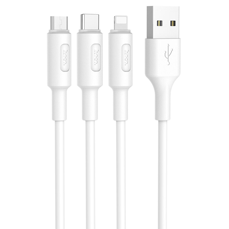 Кабель USB HOCO X25 Soarer 3 в 1 USB - Type-C + Lightning + MicroUSB, 2А, 1 м, белый информация: