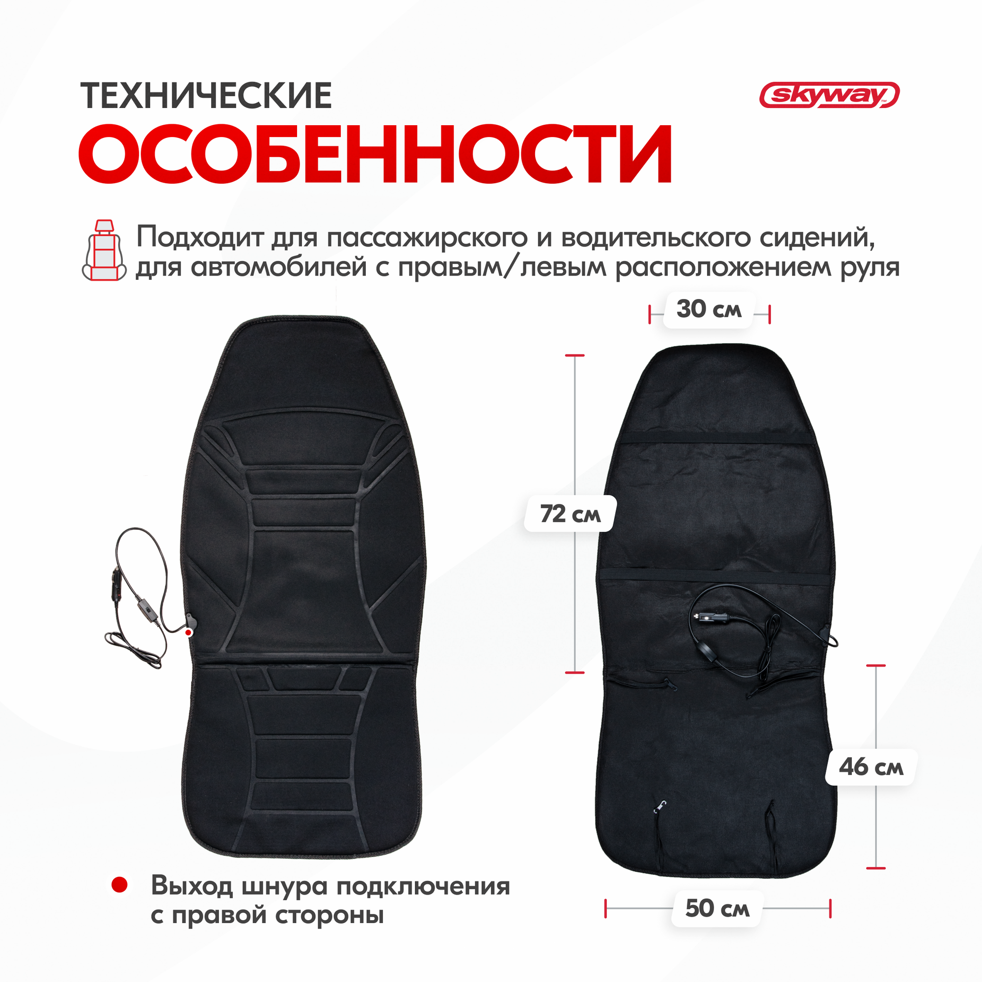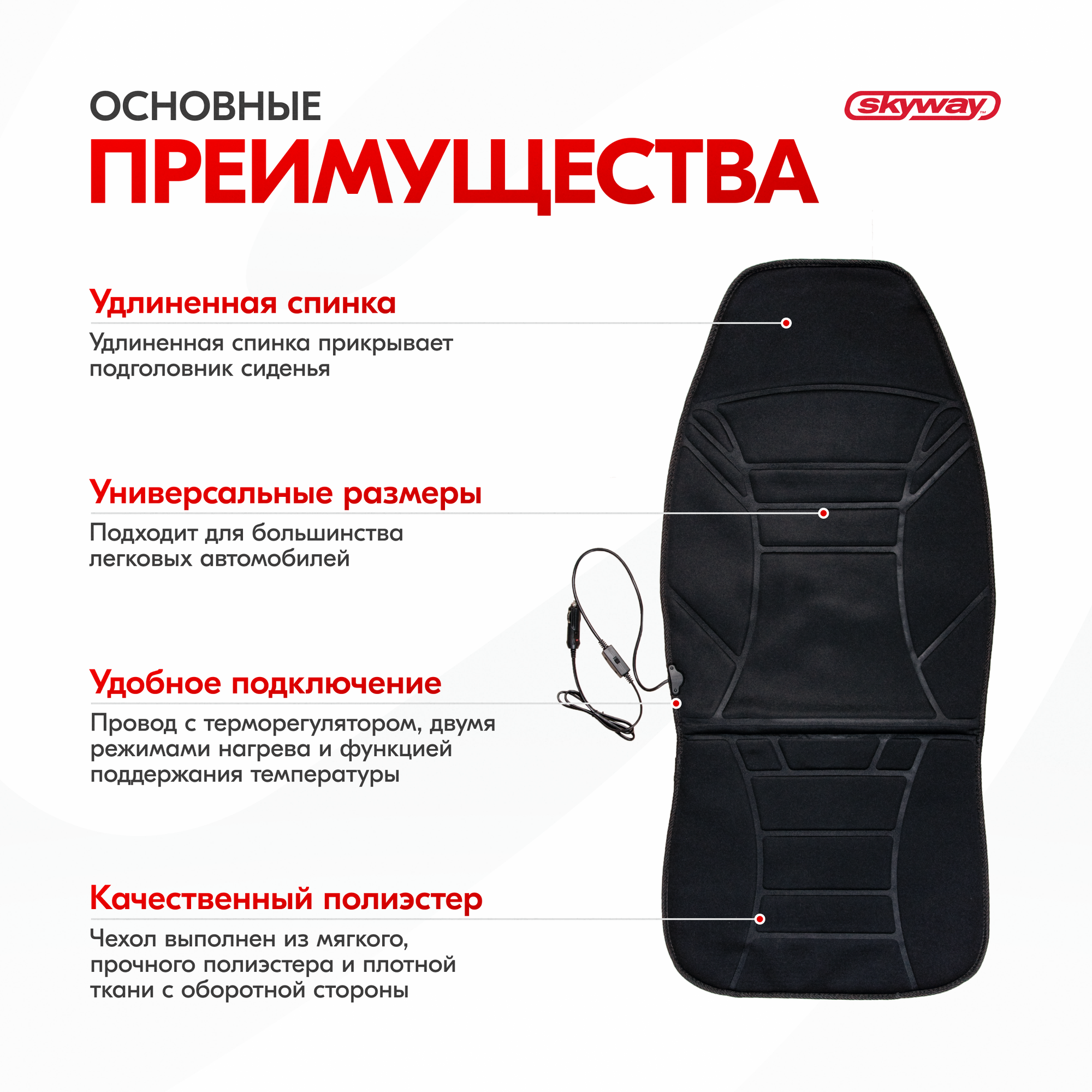 Накидка на сиденье с подогревом 12V с терморегулятором черная, SKYWAY S02201002 (1 шт.) информация: