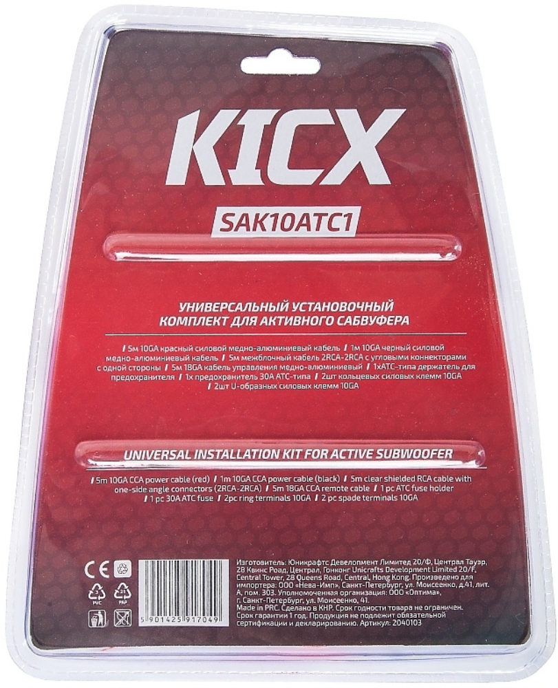 Набор для установки усилителя, KICX SAK10ATC1 (1 шт.) информация: