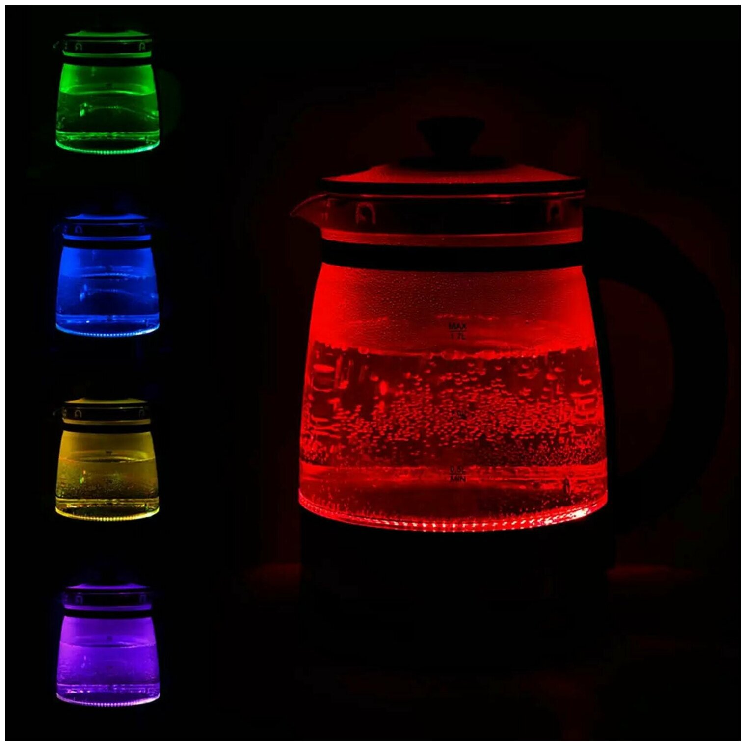 Чайник электрический стеклянный LEX LXK 30010-1, объем 1,2 л, подсветка.