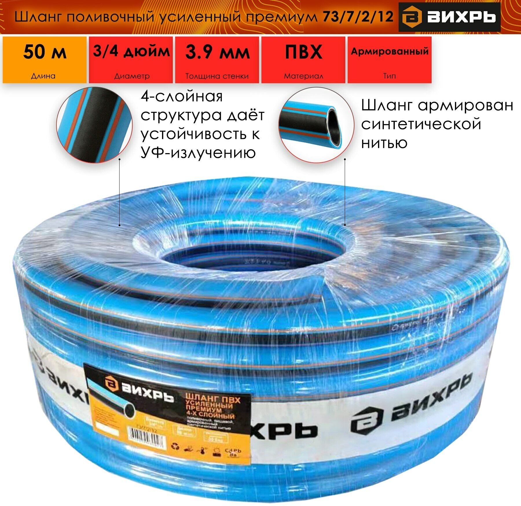 Поливочный армированный шланг Вихрь ПВХ усиленный премиум, 3/4, 50 м 73/7/2/12